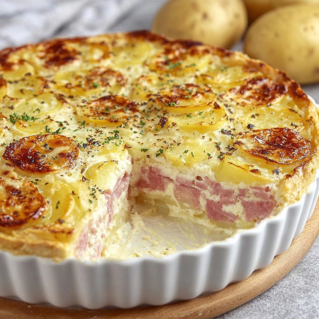 La quiche fait partie intégrante du patrimoine culinaire français. Issue à l’origine des régions de l’est, elle s’est rapidement diffusée dans tout le pays grâce à sa facilité de préparation et à sa grande adaptabilité. La version aux pommes de terre et jambon s’inscrit dans une tradition de cuisine pratique et économique, utilisant des ingrédients courants présents dans de nombreux foyers. Elle illustre parfaitement l’esprit de la cuisine domestique, où l’on cherche à nourrir généreusement tout en conservant une certaine harmonie des saveurs.