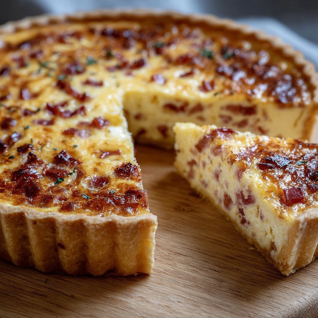 La quiche lorraine traditionnelle aux lardons incarne l’équilibre parfait entre simplicité, gourmandise et authenticité. Elle met en valeur des ingrédients classiques dans une préparation soignée et harmonieuse,