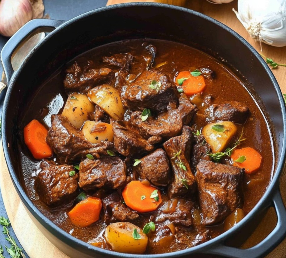 Rien ne vaut un bon ragoût de bœuf pour réchauffer les cœurs et éveiller les papilles. Ce plat emblématique des cuisines familiales et des tables généreuses est l’un des piliers du répertoire culinaire français. Tendre, parfumé, nourrissant, il traverse les saisons et les générations. Aujourd’hui, nous vous présentons une version aux légumes rustiques et aux champignons, mijotée lentement pour révéler toute la richesse des saveurs.