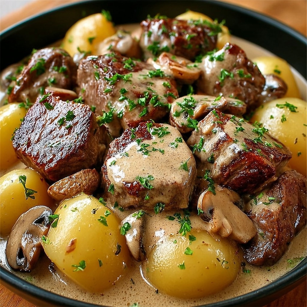Ragoût de bœuf crémeux aux pommes de terre et champignons