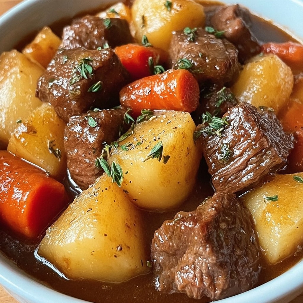 Sur le plan nutritionnel, ce ragoût apporte des protéines de qualité grâce au bœuf, des glucides complexes avec les pommes de terre, des fibres et vitamines via les carottes et les légumes, ainsi que des minéraux provenant du bouillon et des herbes aromatiques. La cuisson lente concentre les saveurs tout en conservant les qualités nutritionnelles des ingrédients.