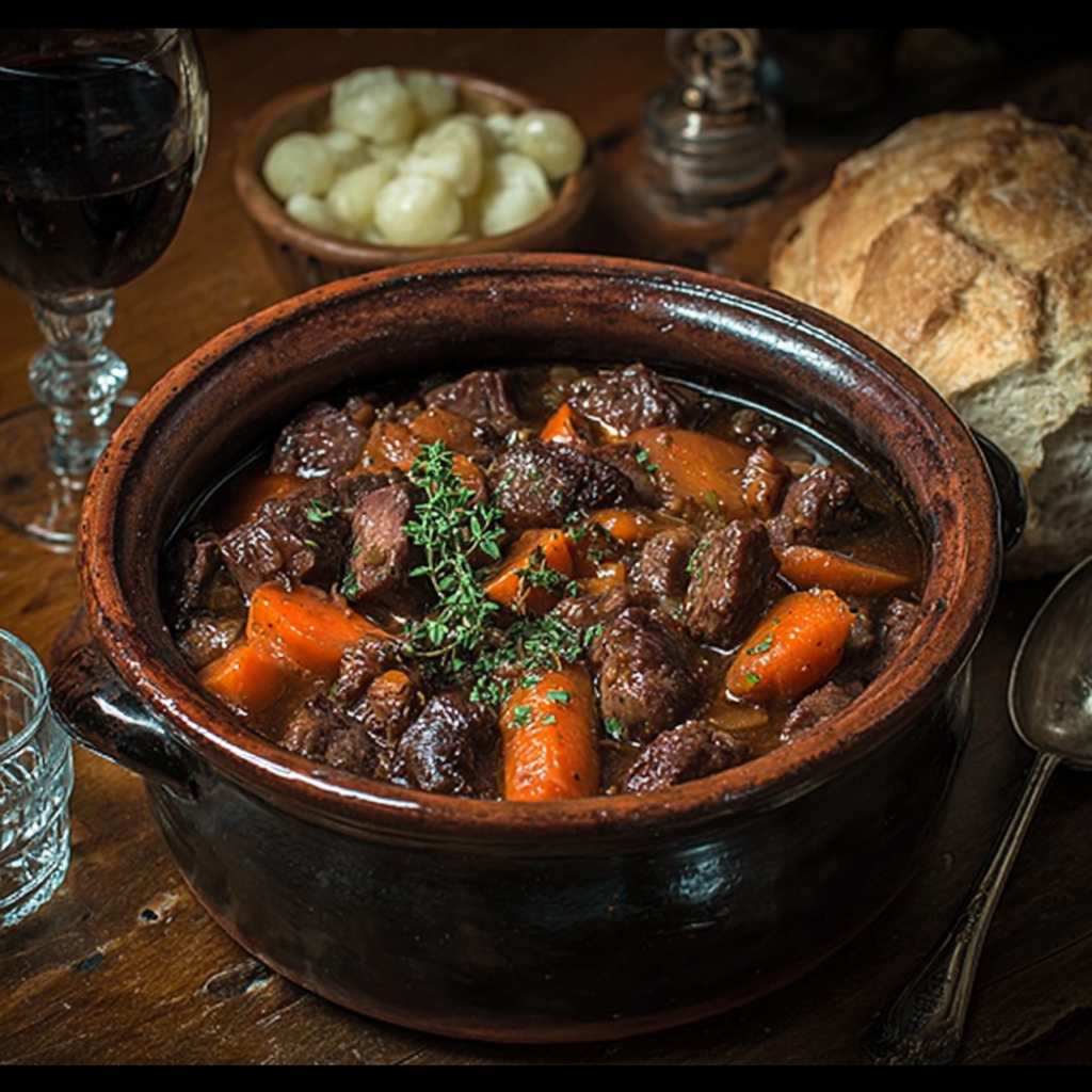 Le ragoût de sanglier est un grand classique de la cuisine traditionnelle. Lentement mijotée, la viande devient fondante et s’imprègne profondément des arômes du vin rouge, des légumes et des herbes. C’est un plat chaleureux, authentique et convivial, idéal pour les repas en famille ou entre amis, surtout pendant les saisons fraîches.