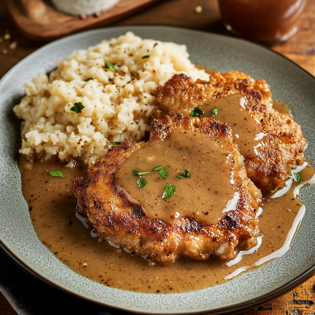 Envie d’un repas copieux à la saveur du sud des États-Unis ? Les côtelettes de porc frites accompagnées de leur sauce riche sont le plat parfait pour satisfaire votre appétit. Cette recette allie une panure croustillante à une sauce crémeuse qui réchauffe le cœur. Facile à préparer, elle peut être servie pour un repas en famille ou lors d’un dîner réconfortant.