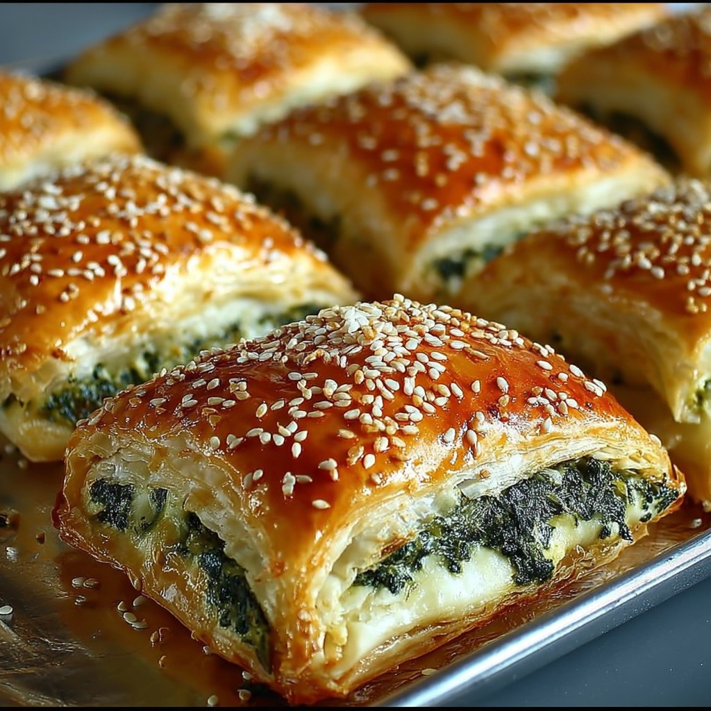Les bourekas au fromage et aux épinards offrent une combinaison irrésistible entre le croustillant de la pâte et le fondant de la garniture. La feta apporte une note salée et légèrement acidulée, tandis que la ricotta adoucit l’ensemble. Les épinards, eux, apportent de la fraîcheur et une belle couleur verte à la coupe. Chaque bouchée révèle un équilibre entre le moelleux du fromage et la légèreté feuilletée de la pâte.
