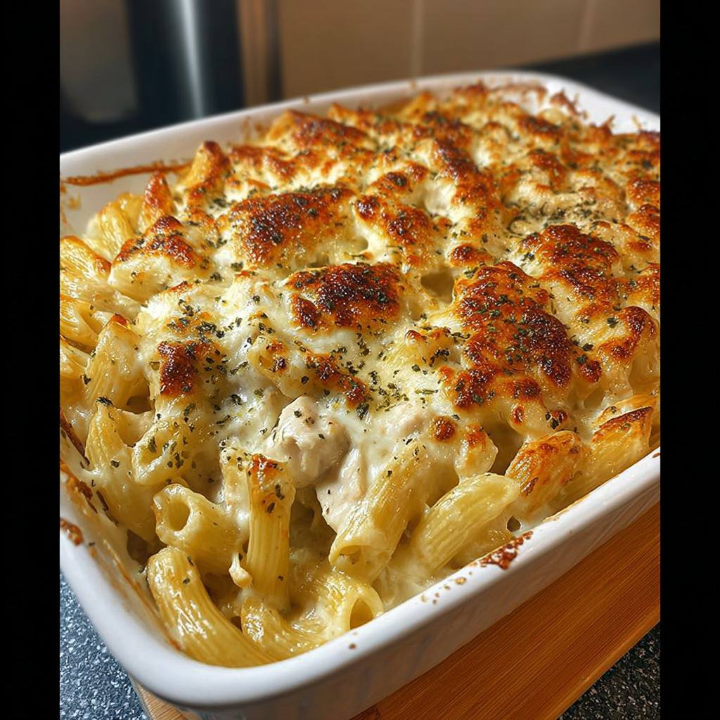 Recette de gratin de pâtes Alfredo au poulet et au fromage