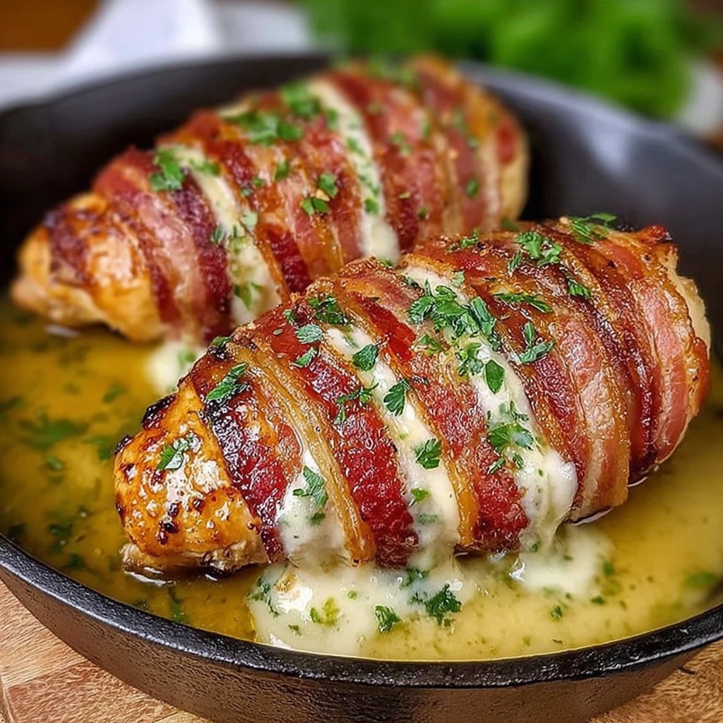 La poitrine de poulet farcie enveloppée de bacon est un plat généreux et savoureux qui séduit par la combinaison de textures et de saveurs. La tendreté du poulet, la richesse de la farce au fromage et aux épinards et le croustillant du bacon créent un plat réconfortant et raffiné. Facile à préparer et adaptable selon les ingrédients disponibles, il constitue un repas complet et élégant, parfait pour toutes les occasions, du dîner quotidien au repa