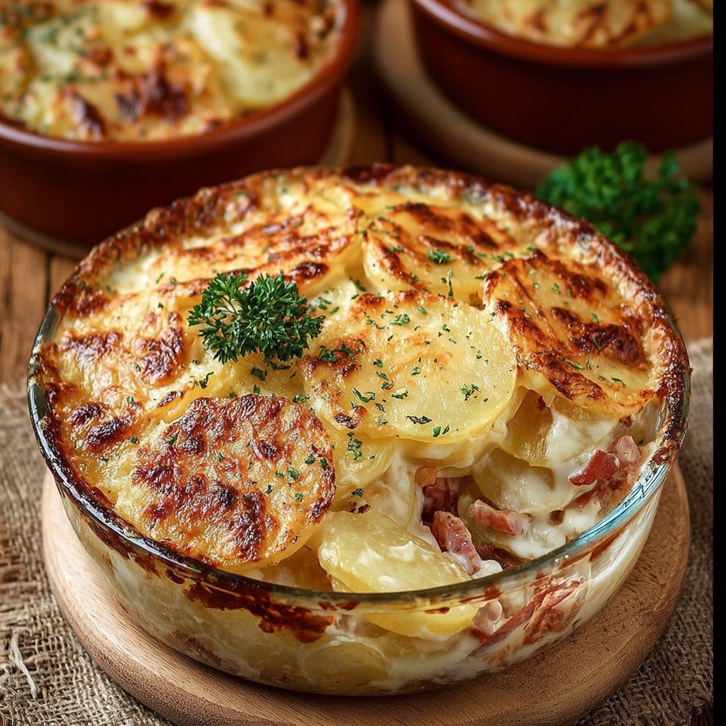 Les rondelles de pommes de terre sont précuites dans de l’eau légèrement salée jusqu’à ce qu’elles soient tendres mais fermes. Cette précuisson assure une texture finale homogène et évite que les pommes de terre ne deviennent pâteuses dans le gratin.