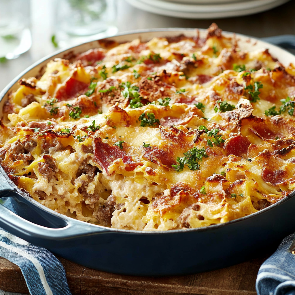 Profitez de cette recette de casserole de pâtes et viande et n’hésitez pas à expérimenter avec d’autres ingrédients pour créer votre propre version ! Bon appétit !