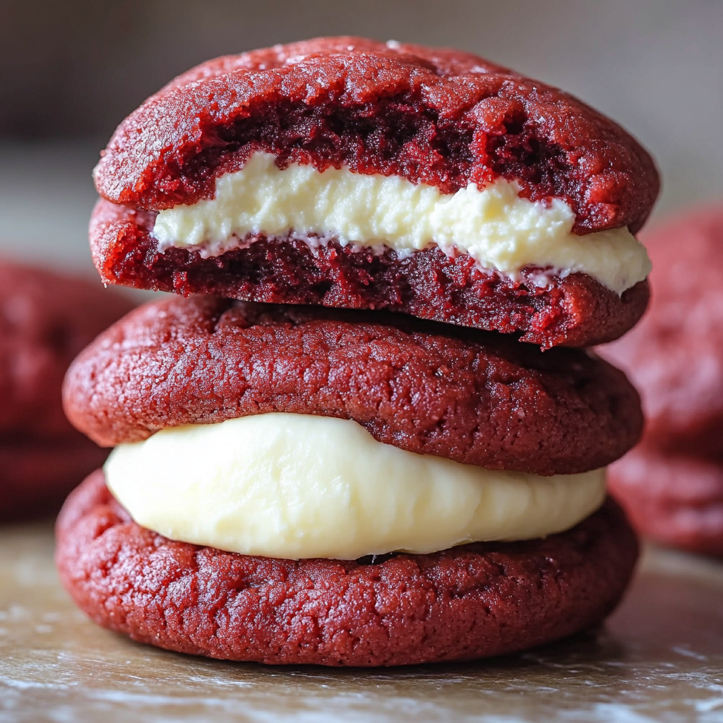 Indulge in these decadent red velvet cookies with a creamy cream cheese center!