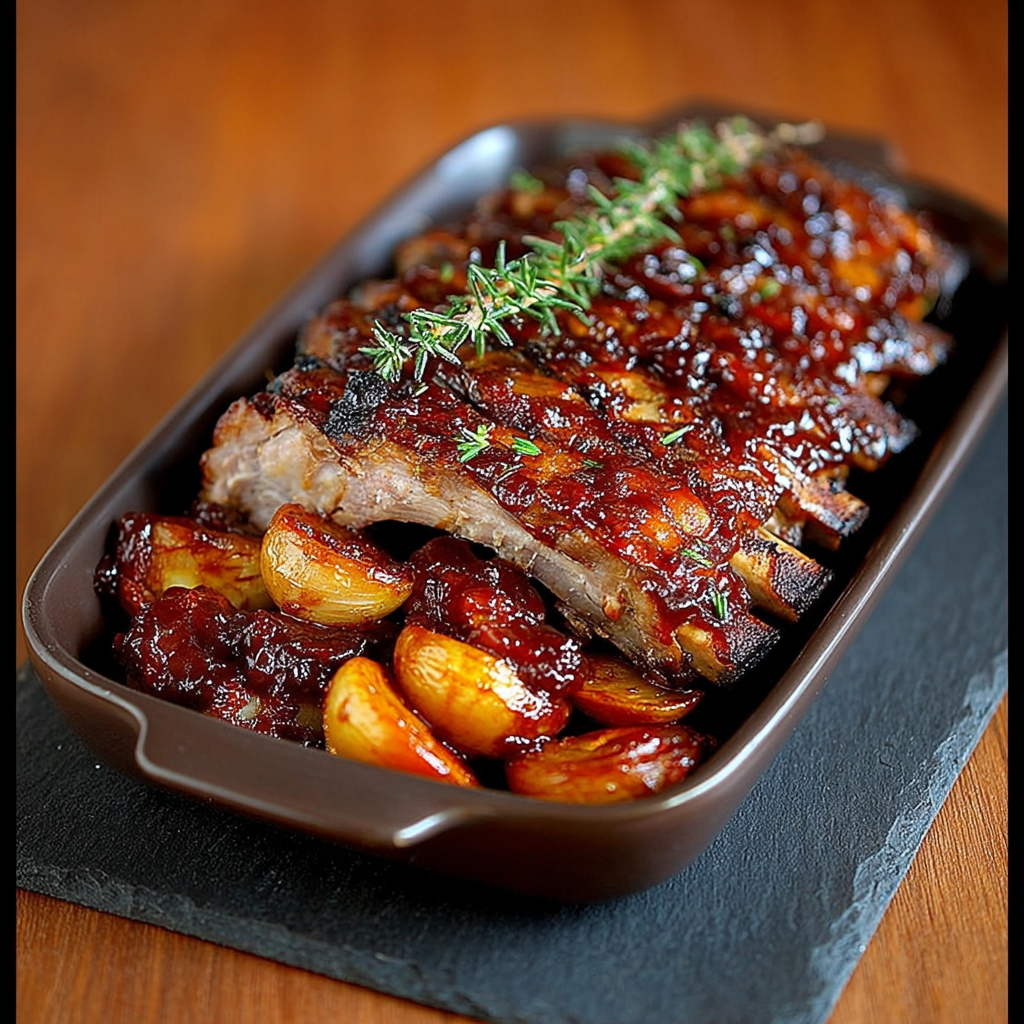 Les ribs au four, nappés d’une sauce barbecue maison riche et savoureuse, sont un véritable classique de la cuisine conviviale. Longuement cuits à basse température, les travers de porc deviennent incroyablement tendres, presque confits, avant d’être caramélisés avec une sauce épaisse et parfumée. Ce plat, inspiré de la tradition américaine, s’adapte parfaitement à une préparation maison simple, sans nécessiter de barbecue.