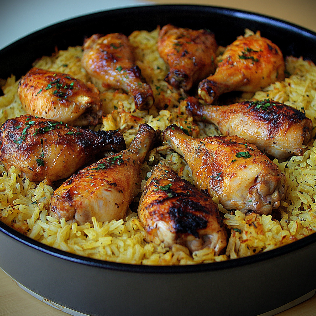Découvrez ce plat réconfortant de riz cuit au four avec des hauts de cuisse de poulet assaisonnés, parfait pour un dîner savoureux et facile à préparer.