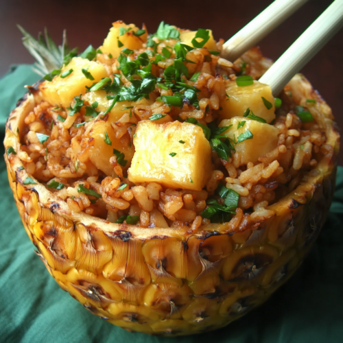 Essayez une présentation originale : Servez ce riz frit dans une moitié d’ananas évidée pour un effet “wow” garanti.