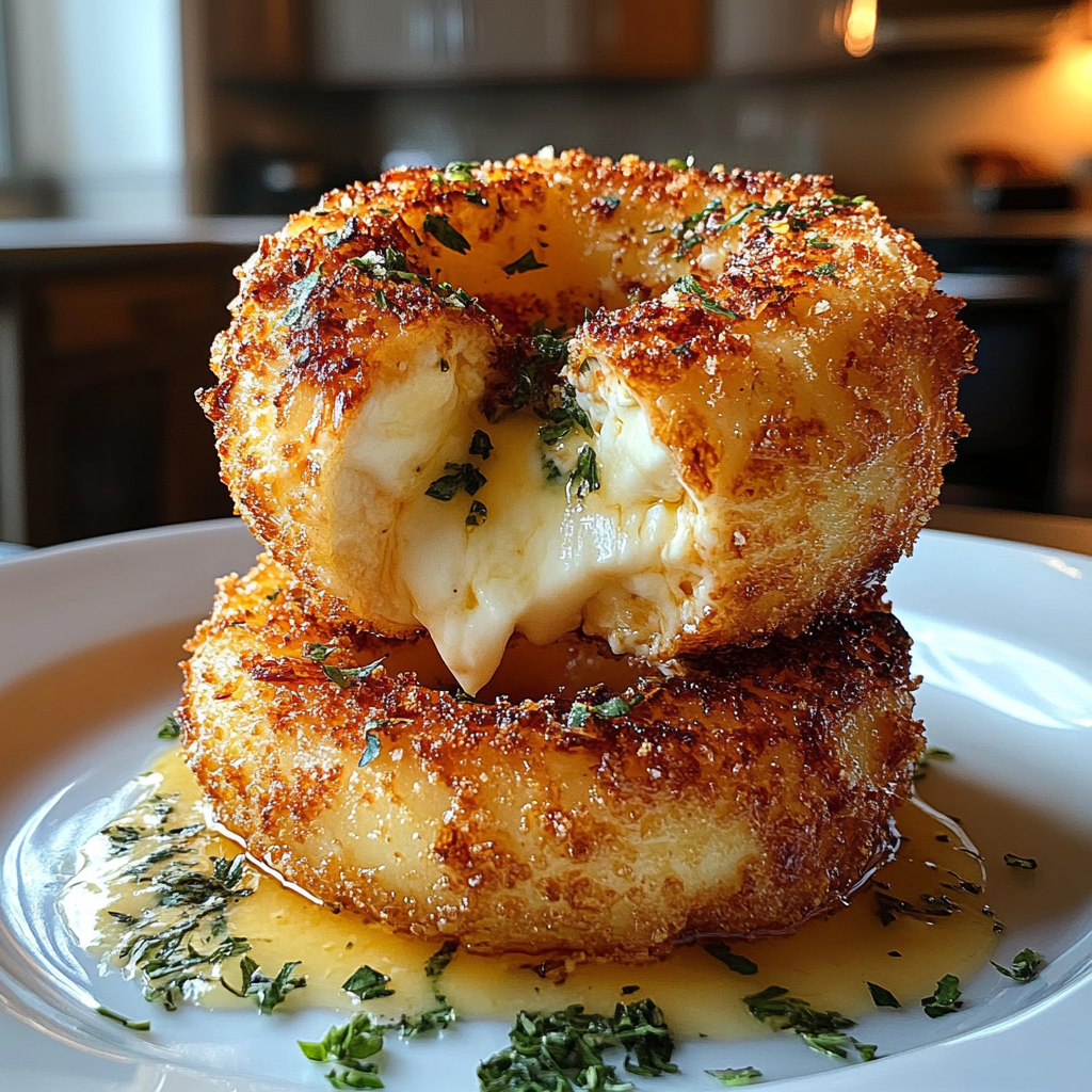 Imagine une bouchée croustillante à l’extérieur, fondante au cœur, qui dégage un parfum irrésistible d’ail et de beurre chaud. Ces rondelles d’oignon farcies à la mozzarella sont un vrai petit bijou culinaire, parfaits pour surprendre lors d’un apéritif, en accompagnement d’un burger ou tout simplement à grignoter devant un bon film.
