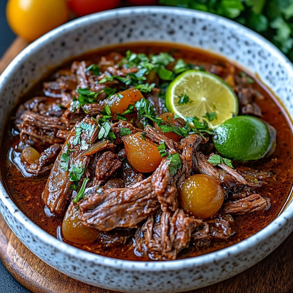 Portez à ébullition, puis réduisez le feu et laissez mijoter à couvert pendant environ 2 heures, jusqu’à ce que la viande soit tendre et s’effiloche facilement.