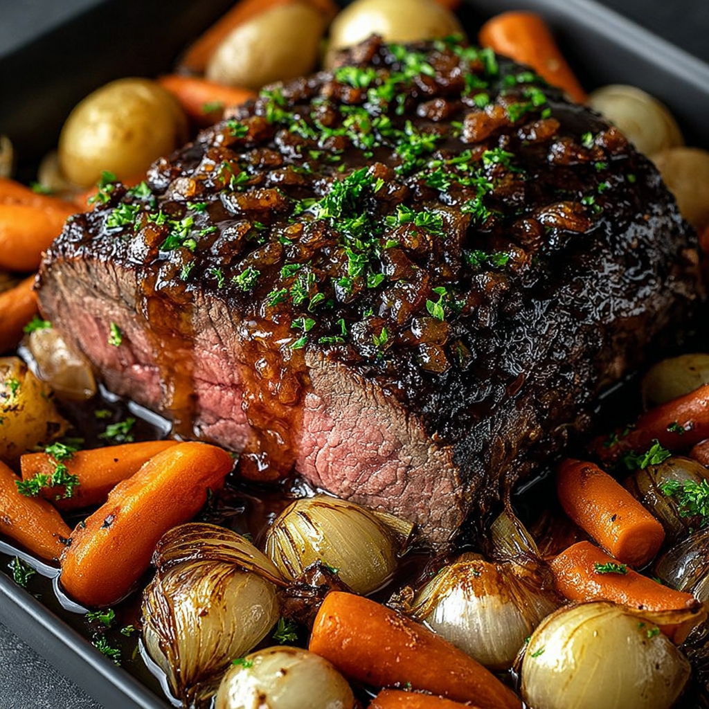 Un plat généreux et raffiné, où la viande tendre est enrobée d’un glaçage sucré-salé et accompagnée de légumes rôtis parfumés.