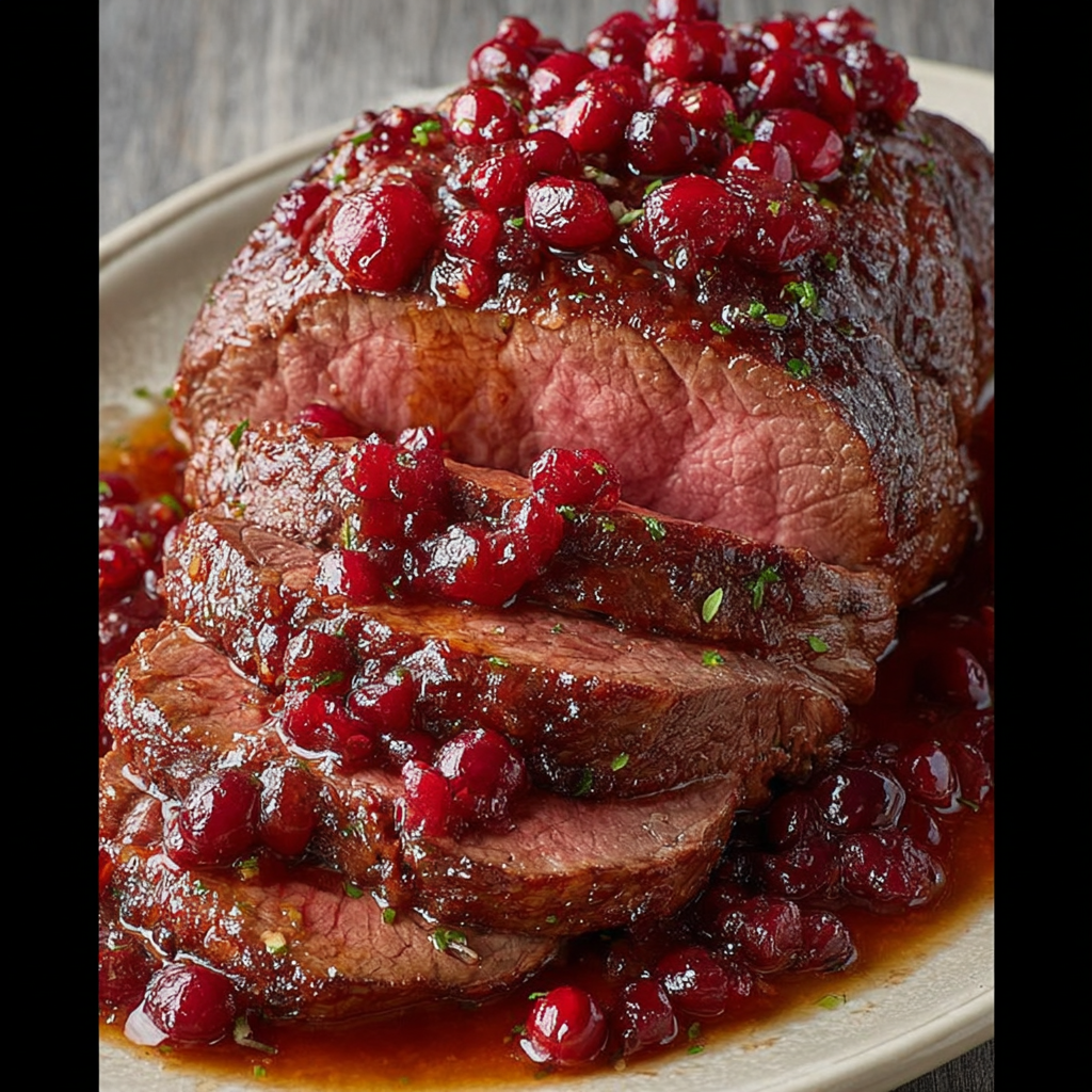 Le rôti de bœuf aux canneberges est une recette audacieuse qui séduit autant par son équilibre de saveurs que par son élégance à table. Il transforme un rôti classique en un plat festif et inoubliable, grâce à l’apport fruité et acidulé des canneberges.