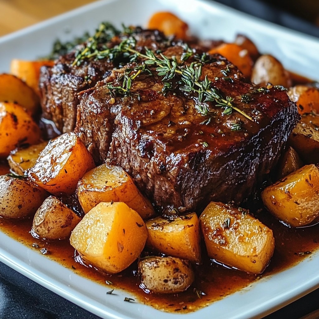 Ce rôti de bœuf braisé lentement, avec ses légumes fondants et sa sauce richement parfumée, est un véritable hymne à la cuisine traditionnelle française. Il incarne la patience, l’amour du bon produit et l’envie de faire plaisir à table. C’est le genre de plat qui transforme un simple repas en moment chaleureux et mémorable.