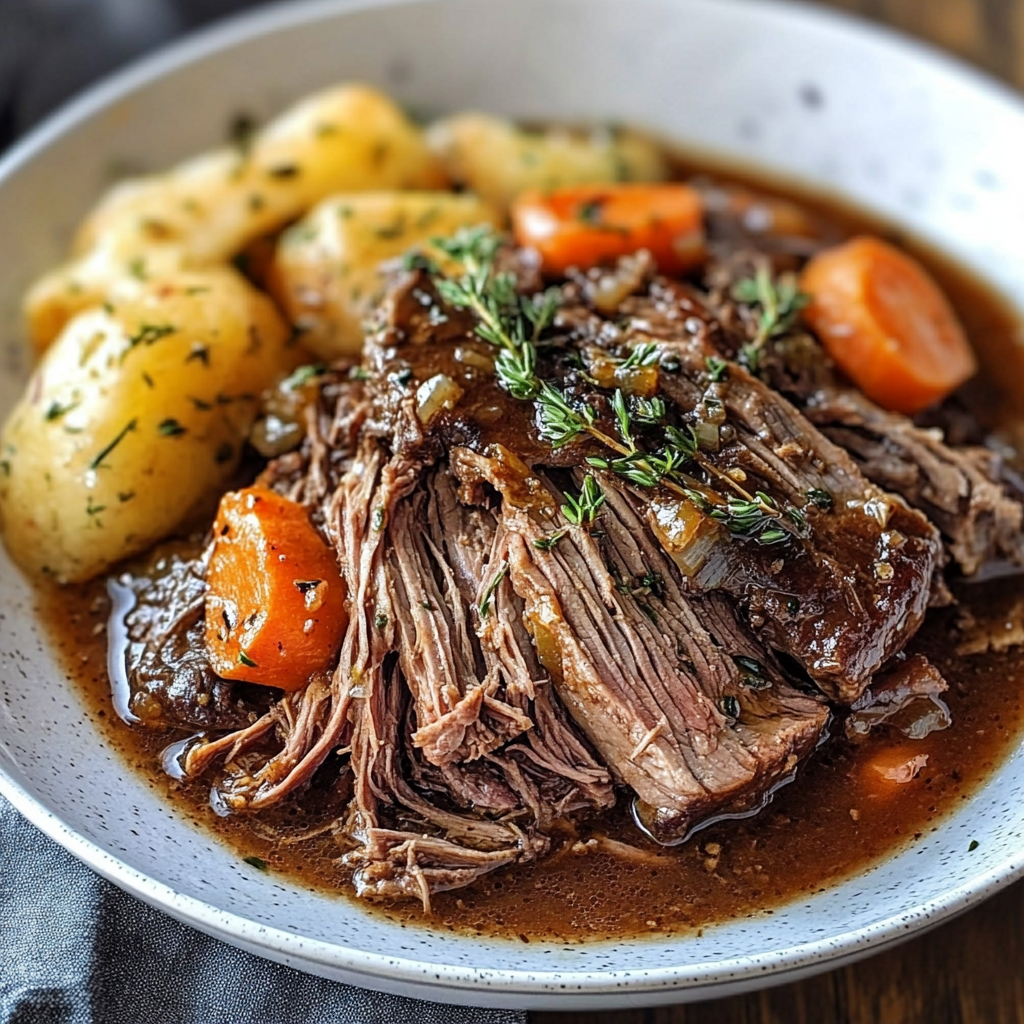 Le rôti de bœuf cocotte classique est une recette simple, réconfortante et pleine de saveurs. En cuisant lentement, la viande devient incroyablement tendre, tandis que les légumes absorbent tous les arômes du bouillon. Que ce soit pour un dîner en famille ou un repas du week-end, cette recette satisfera tous les gourmands. Préparez-vous à recevoir des compliments sur votre plat et à profiter d’un repas délicieux sans stress !
