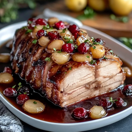 Le rôti de longe de porc à la canneberge et au cidre de pomme est une recette délicieuse, parfaite pour vos repas festifs et vos dîners en famille. Avec une viande tendre et savoureuse, cette recette propose un mariage unique entre la douceur du cidre de pomme, l’acidité des canneberges et la richesse de la moutarde de Dijon. Ce plat est non seulement un délice pour les papilles mais aussi un véritable régal visuel sur votre table. À travers cet article, nous vous guiderons pas à pas pour préparer ce rôti de porc tendre, juteux et rempli de saveurs.
