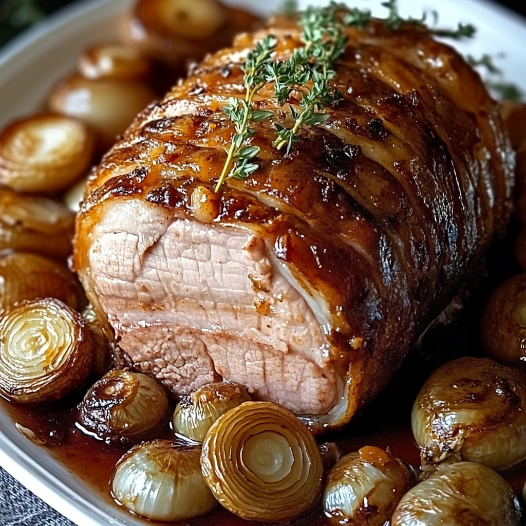 Le Rôti de Porc aux Oignons Caramélisés et Thym est une recette classique de la cuisine française, alliant simplicité et raffinement. Avec ses saveurs sucrées-salées et son parfum envoûtant, ce plat saura séduire vos invités et apporter une touche de convivialité à vos repas. N’hésitez pas à personnaliser cette recette en fonction de vos goûts et des ingrédients disponibles,