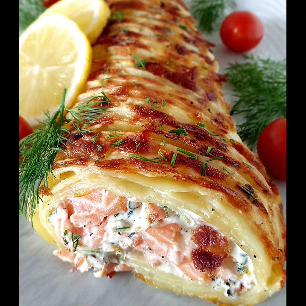Le roulé de pommes de terre gratinées au saumon fumé et au fromage frais est une préparation savoureuse, fraîche et généreuse. Il s’adapte parfaitement à un repas léger, un brunch, un apéritif ou un dîner estival, accompagné d’une salade croquante. La combinaison de pommes de terre fondantes, de fromage gratiné et de saumon fumé, relevée d’aneth et d’un trait de citron, crée une harmonie de saveurs et de textures. Voici la recette détaillée, expliquée pas à pas, avec des quantités et des conseils pour réussir ce roulé gourmand.