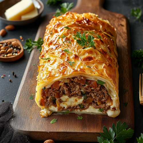 Roulé Feuilleté à la Viande Hachée et Fromage Fondant : Un Délice Savoureux et Croustillant