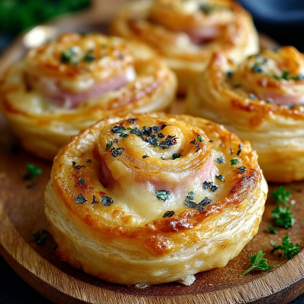 Les rouleaux feuilletés au jambon et au fromage se dégustent aussi bien en apéritif qu’en plat léger accompagnés d’une salade verte. Ils sont parfaits pour les buffets, les pique-niques ou les goûters salés. Leur format individuel les rend faciles à partager et à manger. Servis sur une planche en bois ou un plateau, ils offrent un aspect doré et appétissant qui attire immédiatement l’œil. Lorsqu’ils sont tièdes, le fromage fondant à l’intérieur se marie parfaitement avec la pâte croustillante et la saveur douce du jambon.