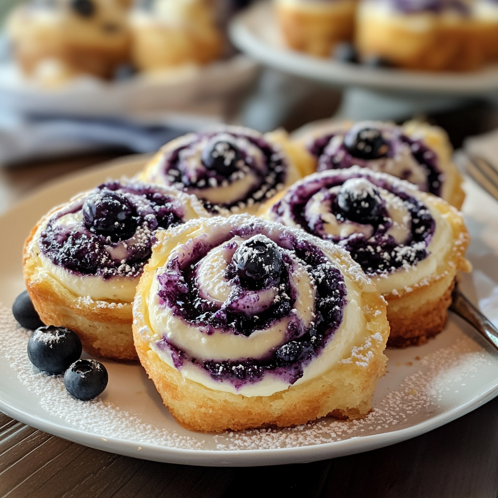 De délicieux roulés au cheesecake avec une croûte de biscuits graham, une garniture crémeuse et des myrtilles fraîches.