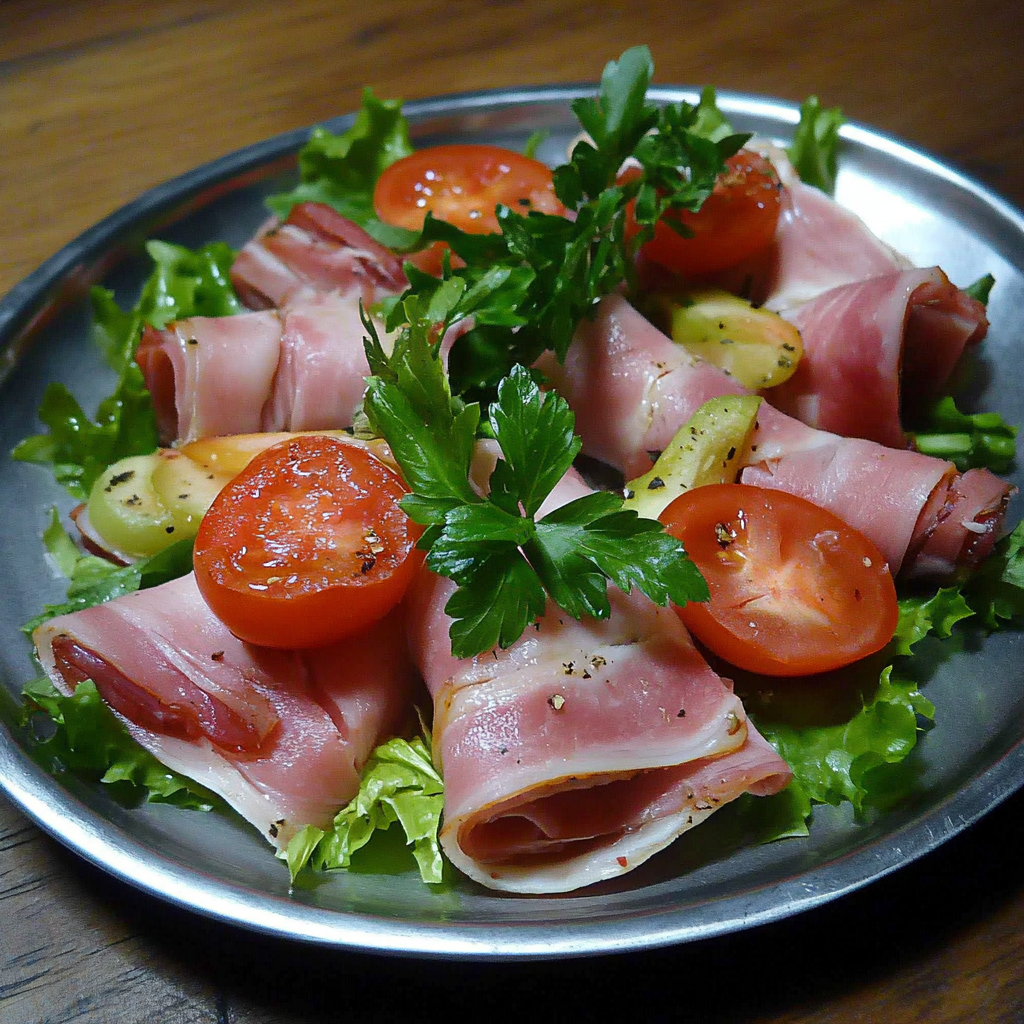 Les roulés de jambon à la macédoine de légumes trouvent leur inspiration dans la tradition culinaire familiale, où l’on valorise les produits simples et de saison. Dans de nombreuses cuisines, le jambon blanc est un ingrédient polyvalent, souvent utilisé pour réaliser des entrées ou des apéritifs rapides et savoureux. L’idée de les garnir d’une macédoine de légumes est née d’un désir de marier la texture fondante du jambon à celle, croquante et colorée, de légumes soigneusement coupés. Ce mélange est non seulement esthétique mais offre également un contraste de saveurs qui dynamise le palais.