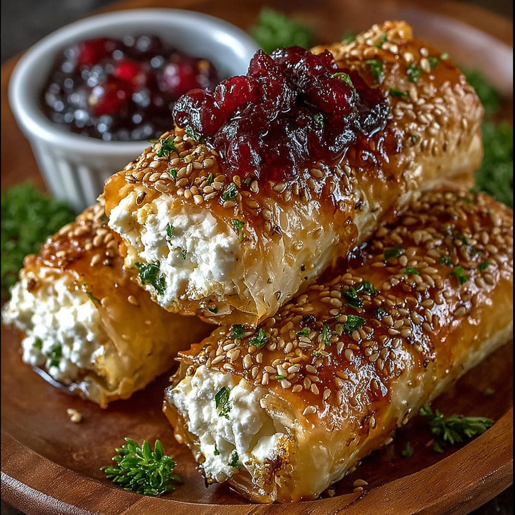 Les roulés dorés à la feta, miel et canneberges sont une recette à la fois simple, raffinée et incroyablement savoureuse. Ce mariage subtil entre le salé de la feta, la douceur du miel et l’acidité des canneberges crée une harmonie parfaite en bouche. Leur texture croustillante à l’extérieur et fondante à l’intérieur en fait une préparation idéale pour les apéritifs, les buffets ou même en entrée légère.