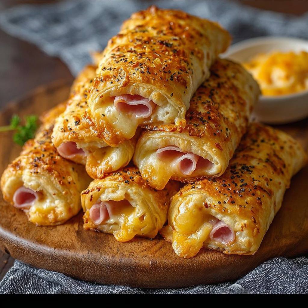 Les roulés feuilletés au jambon et au fromage sont un exemple parfait de la manière dont des ingrédients simples peuvent être transformés en un en-cas ou un plat élégant et savoureux. La combinaison de pâte croustillante, de jambon savoureux et de fromage fondant offre une expérience gustative complète qui plaira à tous les convives.
