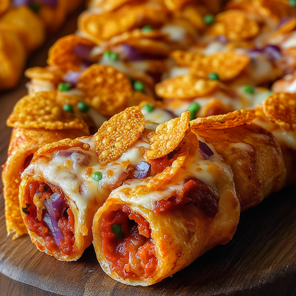 Les roulés Pizza Doritos sont des bouchées apéritives croustillantes et gourmandes, parfaites pour une soirée entre amis!