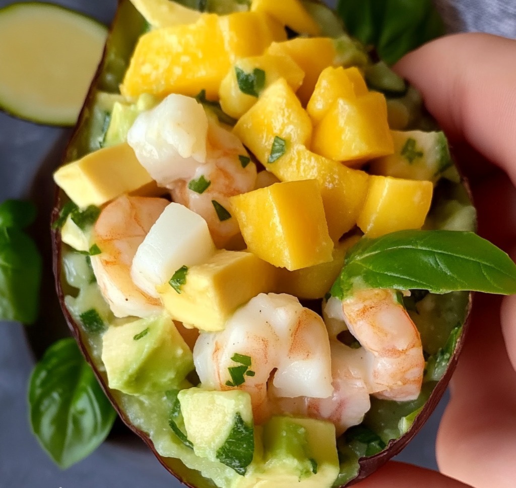 Un plat parfait pour une entrée légère, un déjeuner ensoleillé ou un repas léger du soir. Cette salade tropicale sans cuisson vous séduira par son équilibre entre le gras sain de l’avocat, les protéines maigres des crevettes, et la douceur acidulée de la mangue.