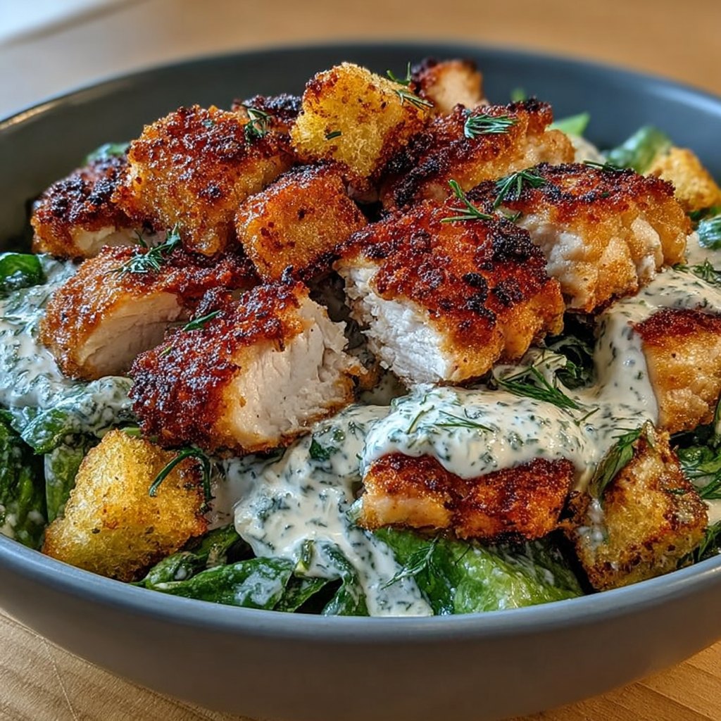 La salade César au poulet croustillant est l’un des plats les plus célèbres au monde. À la fois fraîche, nourrissante et savoureuse, elle incarne l’équilibre parfait entre légèreté et plaisir. Composée de laitue croquante, de poulet doré, de croûtons croustillants, de parmesan fondant et d’une sauce onctueuse, elle séduit tous les palais.