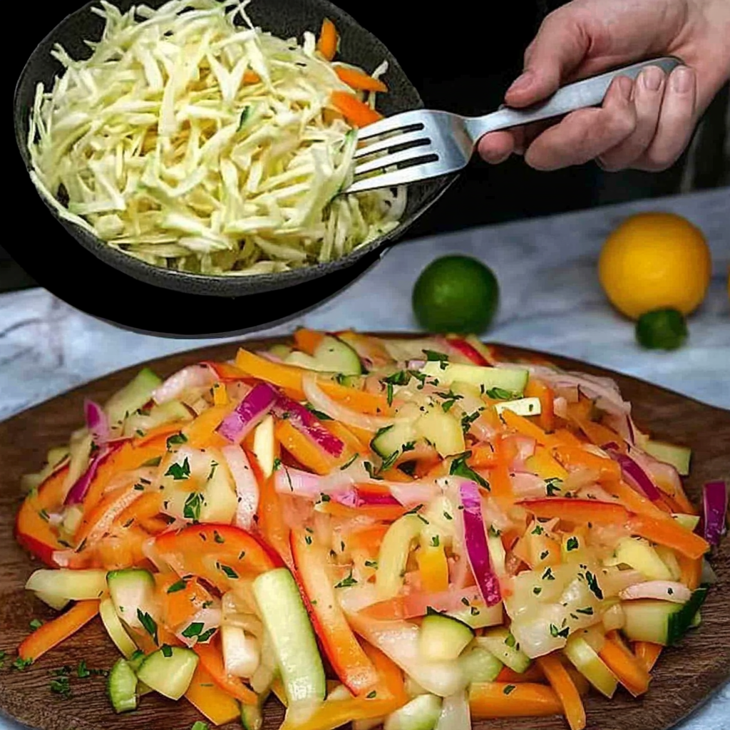 Mélangez bien pour que tous les ingrédients s’imprègnent de la vinaigrette. Servez immédiatement pour garder tout le croquant ou laissez reposer 10-15 minutes au frais pour plus de saveur.