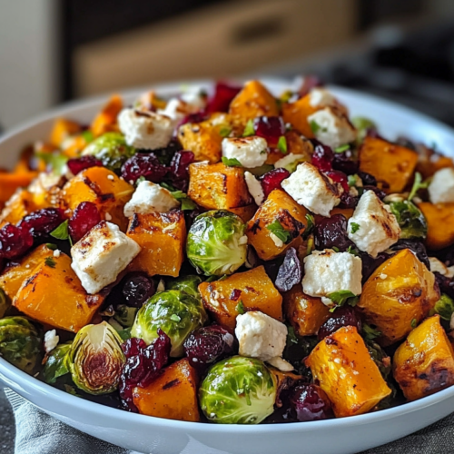 L’automne apporte son lot de saveurs réconfortantes, et cette salade aux légumes rôtis est un véritable hymne à la saison. La courge butternut sucrée, les choux de Bruxelles légèrement caramélisés, et les patates douces tendre et fondantes se marient parfaitement. Le tout est couronné par un glaçage aux canneberges sucré et acidulé et du fromage de chèvre crémeux, créant une harmonie de saveurs que vous ne pourrez plus oublier. C’est un plat nourrissant, plein de couleurs, idéal pour accompagner vos repas festifs ou simplement pour un déjeuner léger et gourmand.