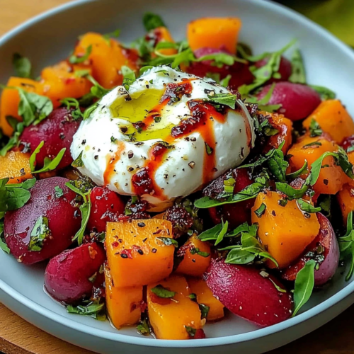 Cette salade de betteraves et carottes rôties à la burrata est bien plus qu’un simple accompagnement. Avec ses légumes rôtis légèrement caramélisés, sa burrata crémeuse et sa vinaigrette délicatement sucrée et acide, c’est un plat qui saura impressionner vos invités tout en étant simple à préparer. Qu’il s’agisse d’un déjeuner léger, d’un dîner en famille ou d’une occasion spéciale, cette salade apportera couleur, fraîcheur et saveurs à votre table.