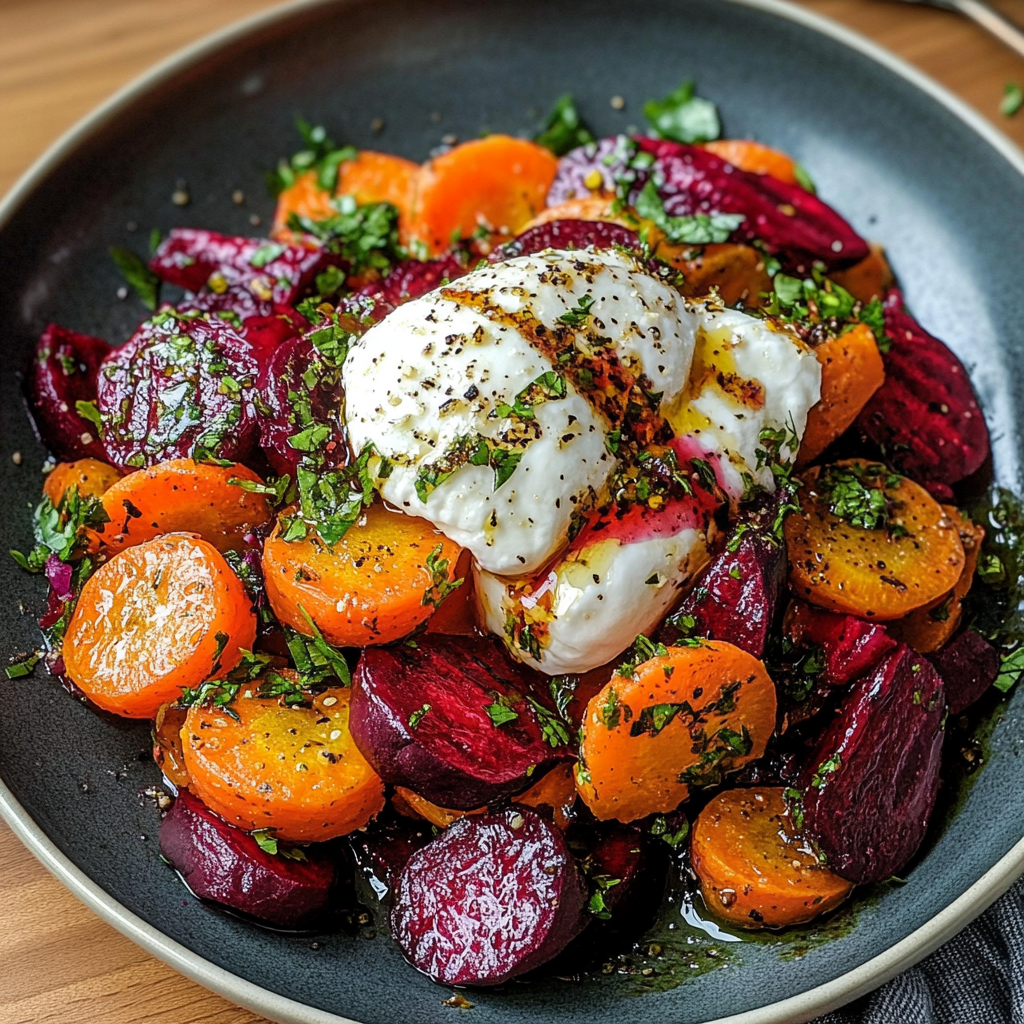 Salade de Betteraves et Carottes Rôties avec Burrata