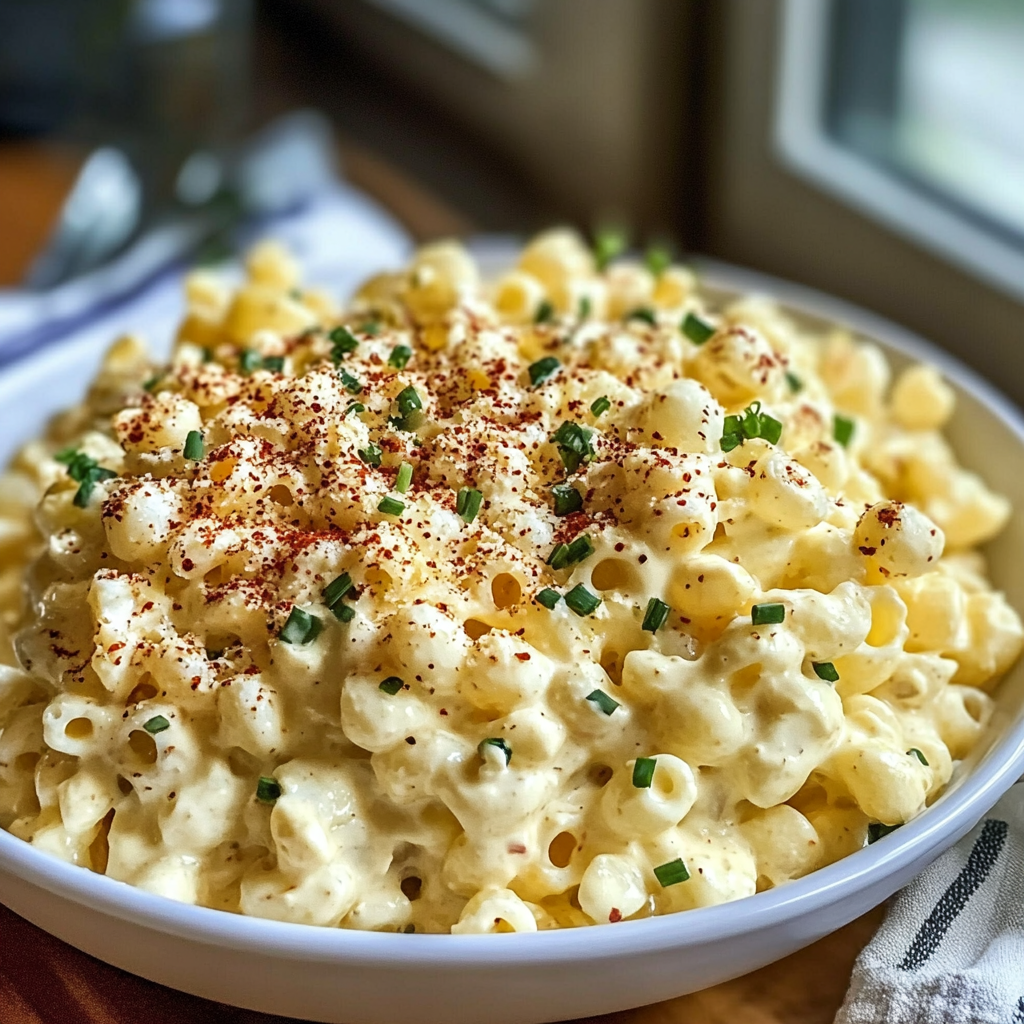 La salade de macaroni est un classique des pique-niques, et cette version aux œufs durs est un excellent moyen d’ajouter des protéines et des saveurs riches. Avec une vinaigrette onctueuse à base de mayonnaise et de moutarde de Dijon, chaque bouchée est une explosion de saveurs.