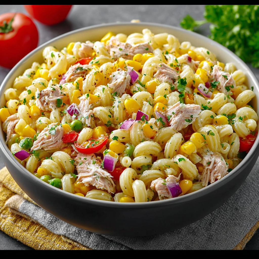 Avec la douceur des macaronis, la richesse du thon, le croquant sucré du maïs et une sauce savoureuse bien équilibrée, cette salade froide plaît autant aux adultes qu’aux enfants. Elle peut se préparer à l’avance, se conserver facilement et s’adapte à de nombreuses variantes selon les envies et les ingrédients disponibles.