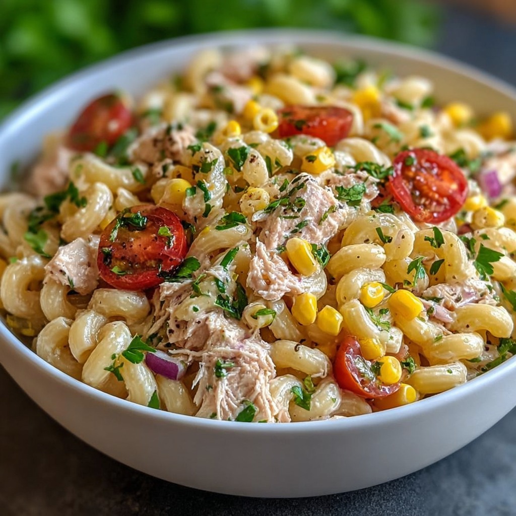 Salade de pâtes macaroni au thon et au maïs