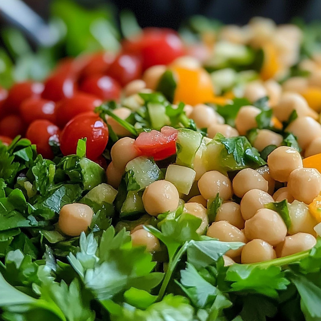 Profitez de cette salade simple et rafraîchissante pour égayer vos repas et découvrir la saveur unique des pois chiches en salade. Bon appétit !
