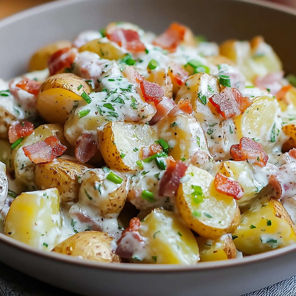 La salade de pommes de terre est une recette conviviale, facile à préparer et toujours très appréciée. Mais lorsqu’on y ajoute du bacon croustillant, un filet d’huile parfumée à l’ail, et quelques herbes fraîches, elle se transforme en un plat savoureux et réconfortant, parfait pour les repas en famille, les pique-niques ou même en accompagnement d’un barbecue.