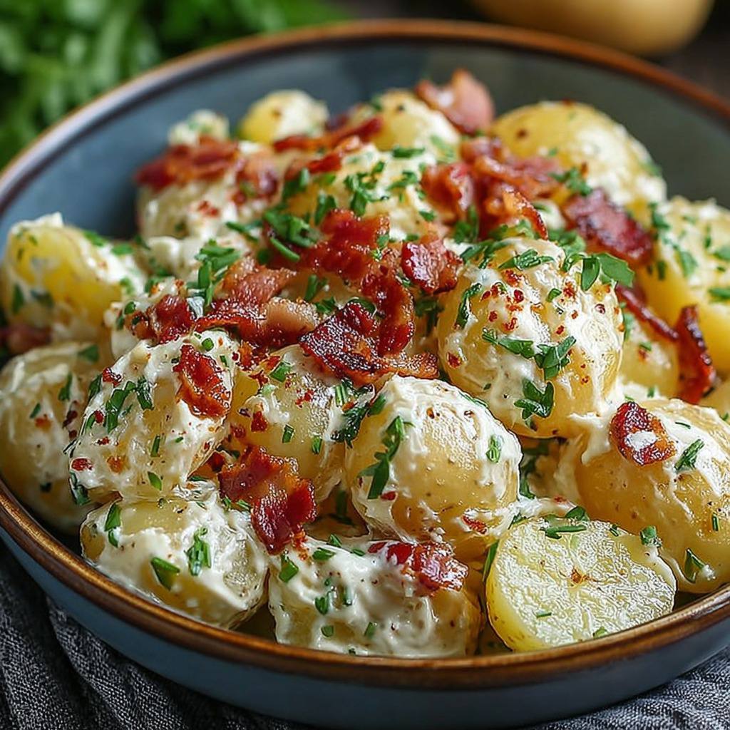 Enfin, cette salade constitue un excellent exemple de plat convivial, qui peut être préparé rapidement mais avec soin. Elle montre l’importance de la sélection des ingrédients, de la maîtrise des cuissons et de l’attention portée aux textures et aux saveurs. Que ce soit pour un repas quotidien, un déjeuner entre amis ou un buffet festif, cette salade de pommes de terre au bacon et à l’ail offre une expérience gustative complète, équilibrée et raffinée.