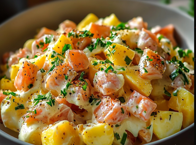 Congélation : Il est déconseillé de congeler cette salade, car les pommes de terre et les œufs peuvent altérer leur texture après décongélation.