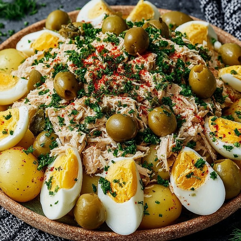 La salade de pommes de terre au thon, œufs et olives est un classique de la cuisine familiale française et méditerranéenne. Elle combine des ingrédients accessibles, nutritifs et faciles à préparer, ce qui en fait un plat pratique et gourmand.