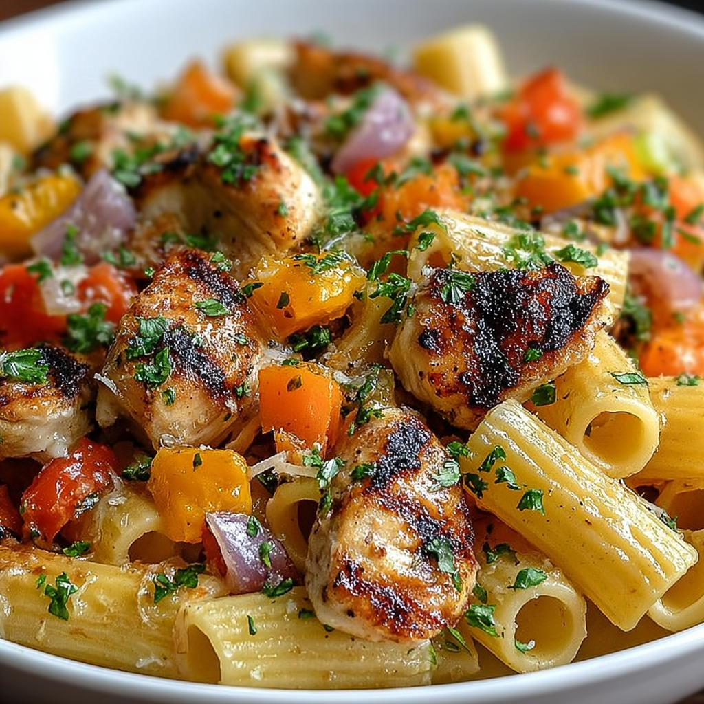 La salade de rigatoni au poulet grillé et légumes croquants est une recette simple, saine et savoureuse. Elle combine fraîcheur, équilibre et gourmandise dans une seule assiette.