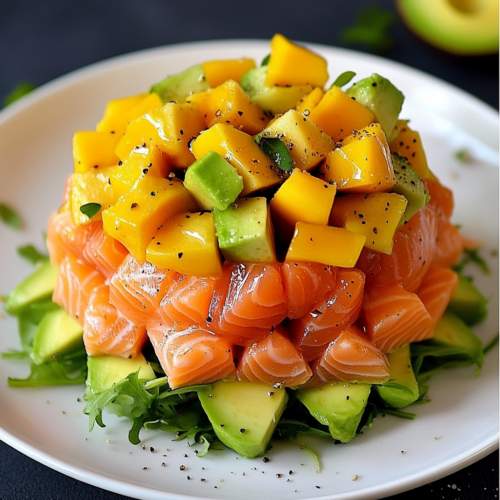Salade de Saumon Fumé, Mangue et Avocat : Une Explosion de Saveurs Fraîches et Colorées