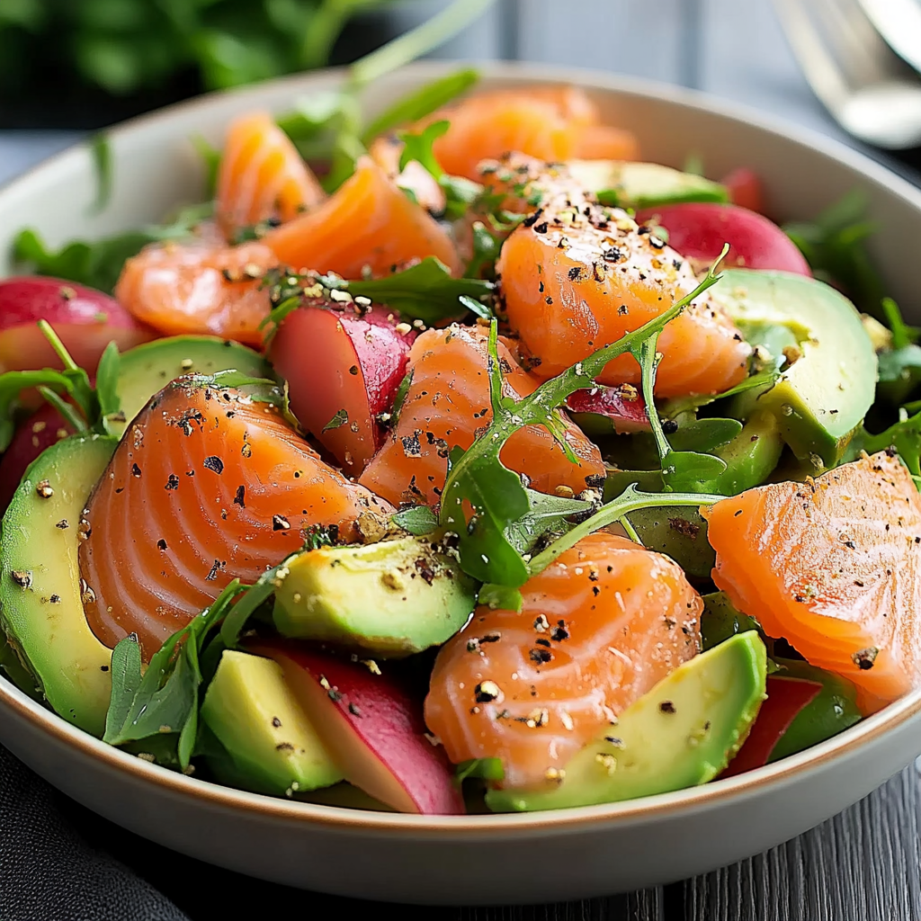 Rapide, fraîche et raffinée, cette salade de saumon fumé et avocat est un classique indémodable. Que ce soit en entrée chic, en repas léger ou en option « healthy » pour un dîner express, elle allie équilibre et saveurs à merveille.