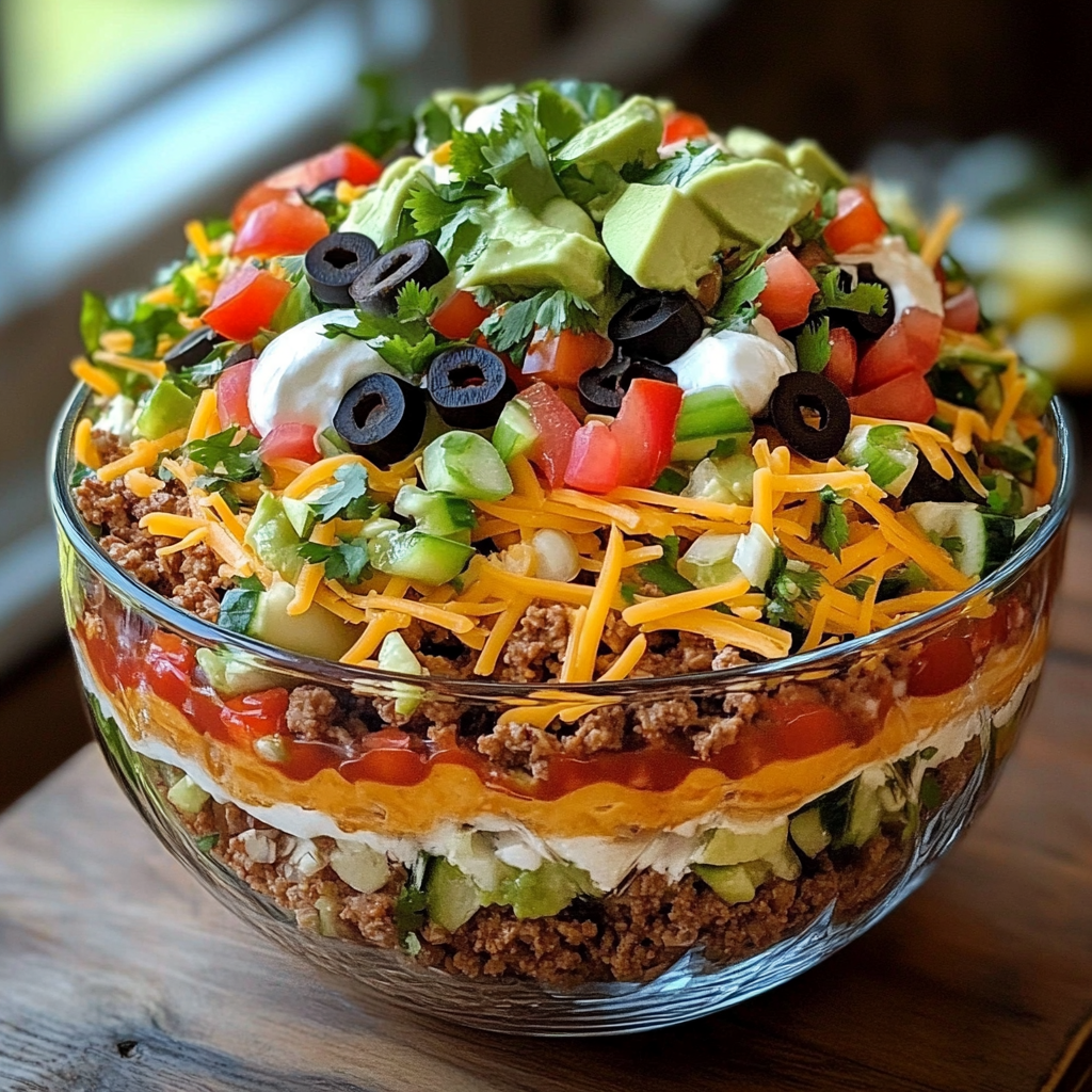 Préparez cette salade taco en sept couches pour une explosion de saveurs! Idéale pour vos repas en famille ou entre amis, cette recette facile et savoureuse est parfaite pour un déjeuner rapide ou un dîner convivial.
